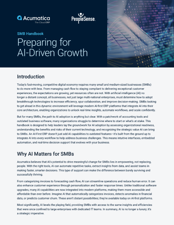 In today’s fast-paced digital economy, small and mid-sized businesses (SMBs) must do more with less. This practical guide helps you evaluate your current systems, understand the benefits and risks of AI adoption, and lay the foundation for smarter, more scalable operations.